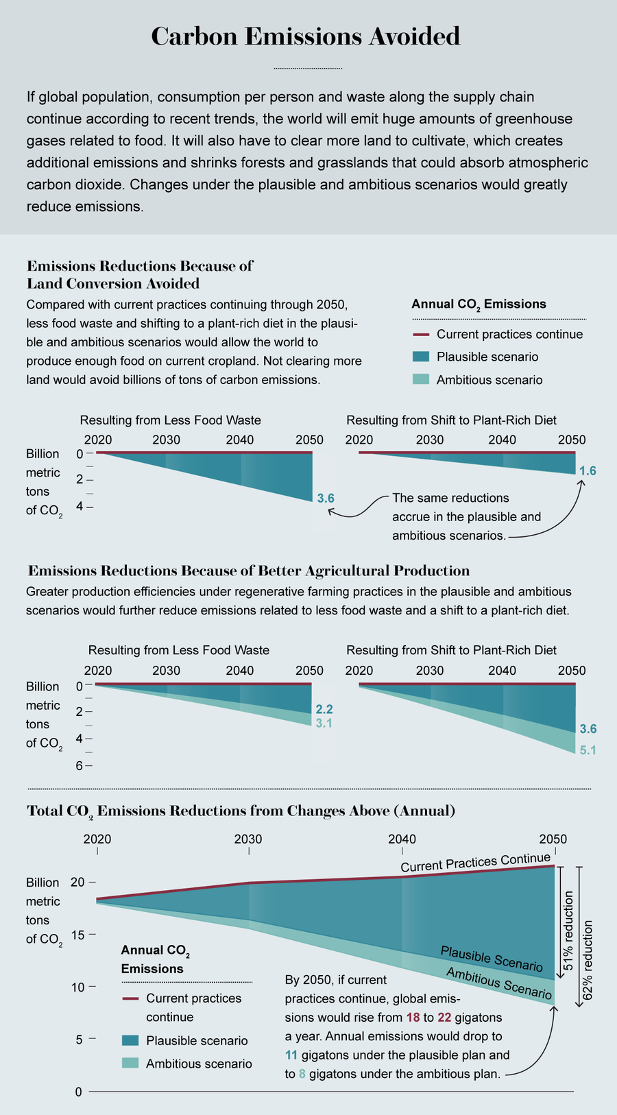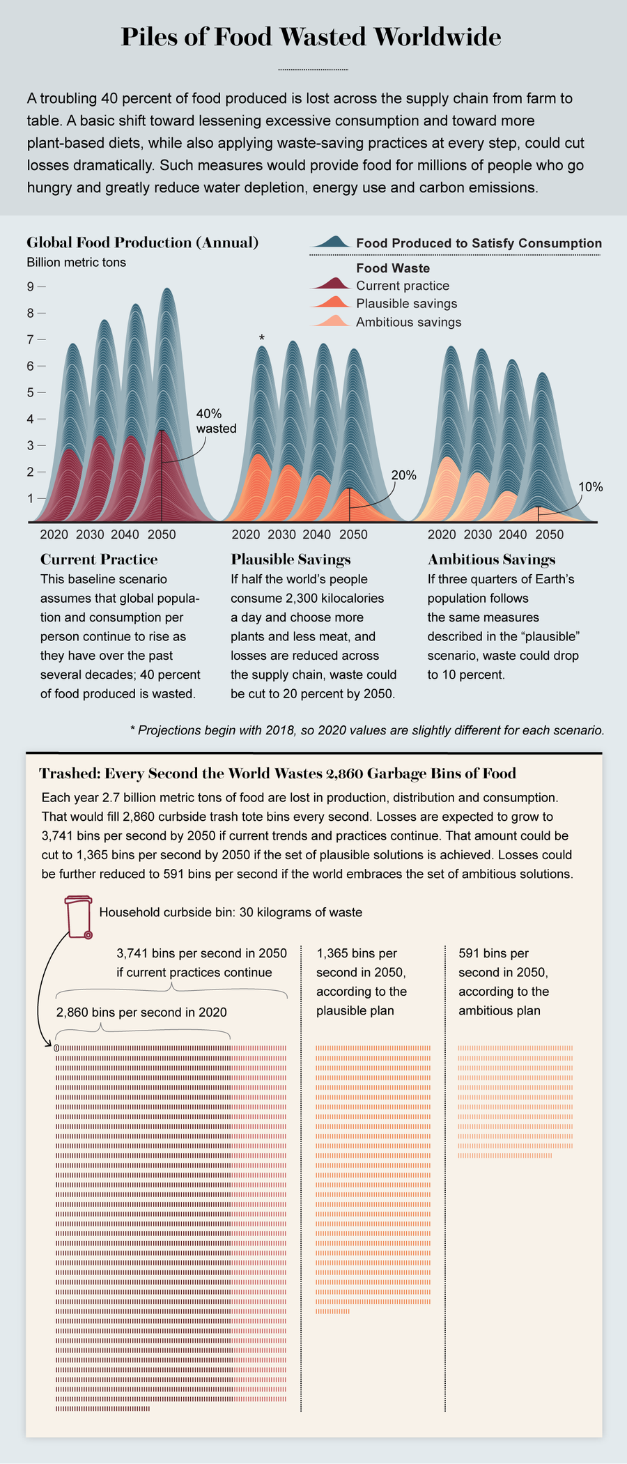 There is another path, however. Our group at Project Drawdown, an international research and communications organization, completed an exhaustive study of existing technologies and practices that can significantly reduce greenhouse gas levels in the atmosphere while ushering in a more regenerative society and economy. Reducing food waste is one of the top-five means of achieving these goals among 76 we analyzed. Basic adjustments in how food is produced and consumed could help feed the entire world a healthy, nutrient-rich diet through 2050 and beyond without clearing, planting or grazing more land than is used today. Providing more food by eliminating waste, along with better ways of producing that food, would avoid deforestation and also save an enormous amount of energy, water, fertilizer, labor and other resources.